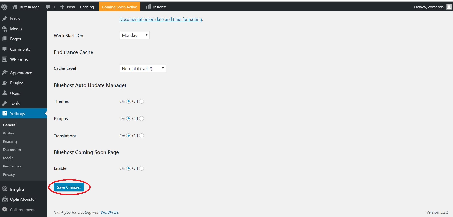 Para que el cambio de idioma tenga efecto, desliza el cursor hasta el final de la página y haz clic en el botón “Save Changes”.
