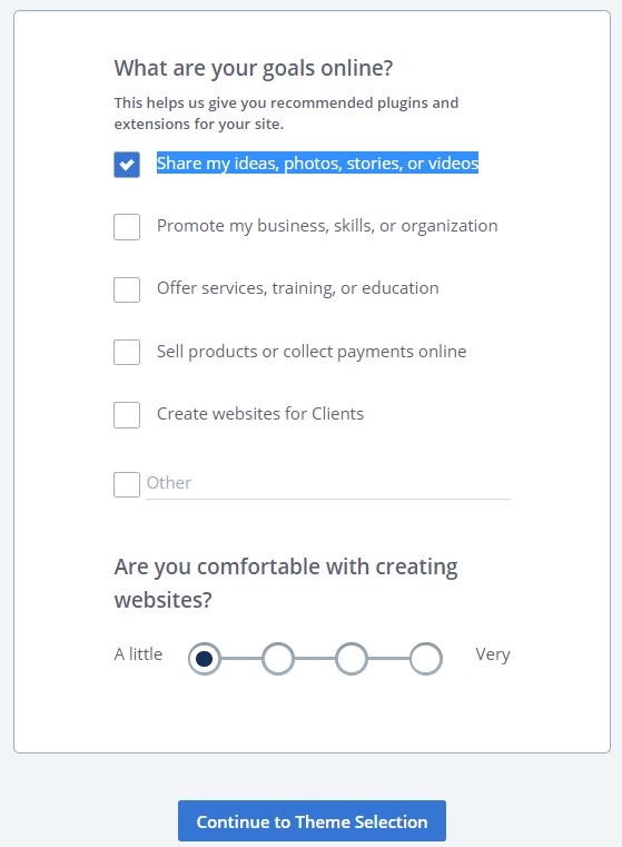 - Finaliza haciendo clic en el botón “Continue to Theme Selection”