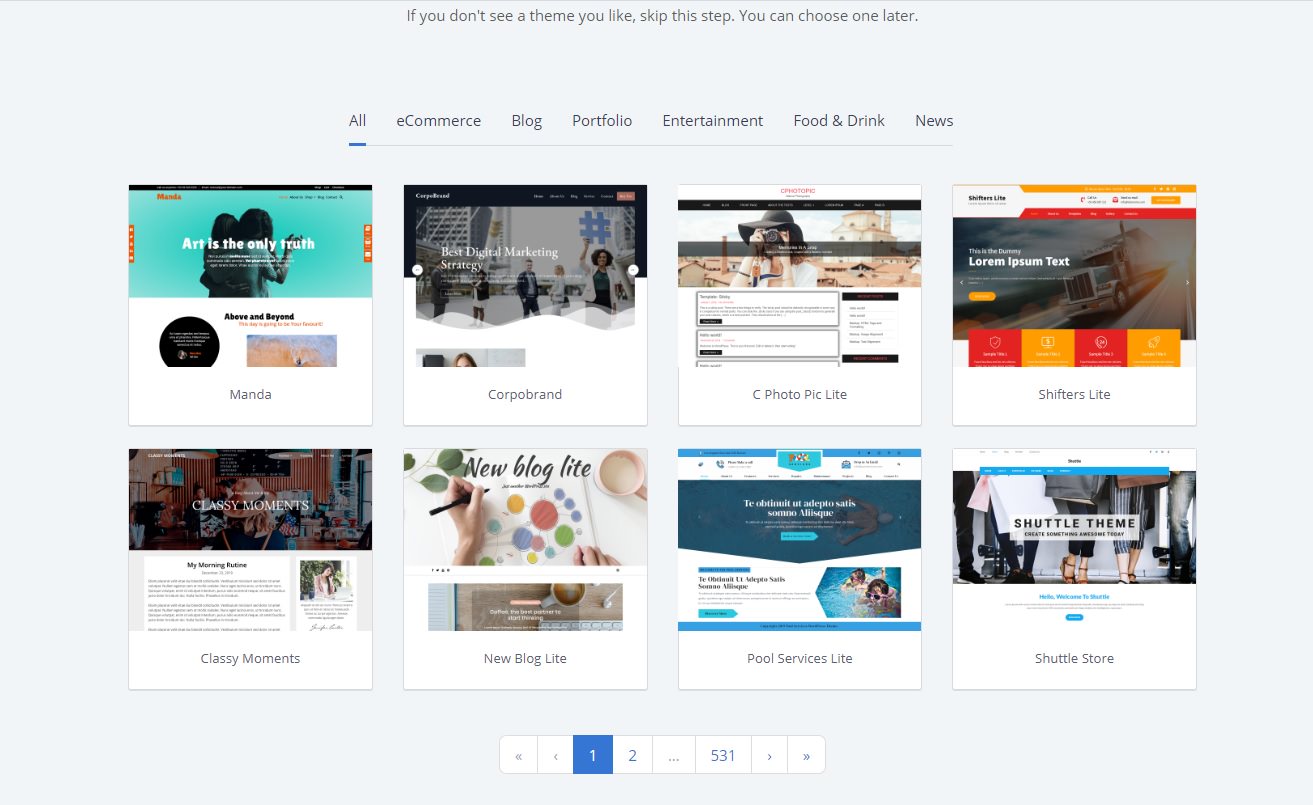 Una vez hayas seleccionado el tema que más te gusta, Bluehost instalará el software de tu blog (WordPress).