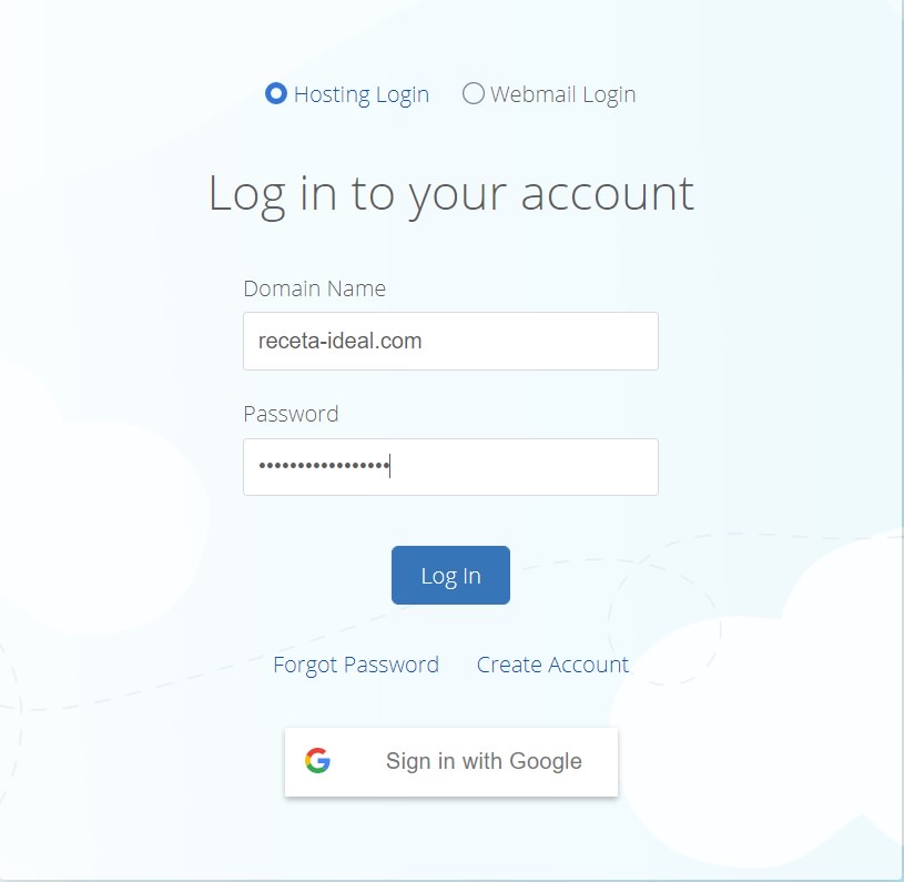 11. Es momento de iniciar sesión en tu cuenta. Ingresa tu nombre de dominio y la contraseña que creaste en el paso anterior. Hecho esto, haz clic en el botón “Log In”